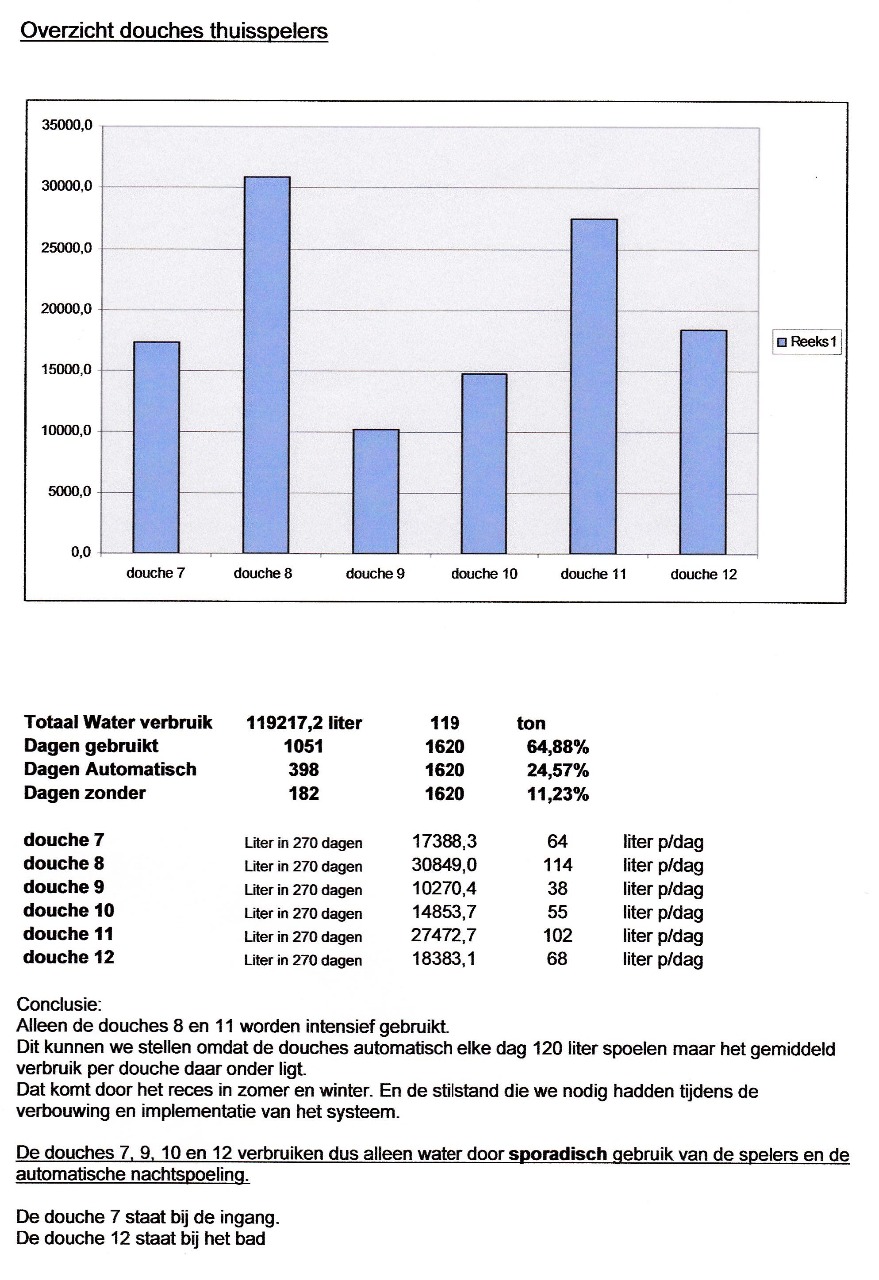 Bijgaand een rapport over gebruik van 6 douchpunten in een doucheruimte.
